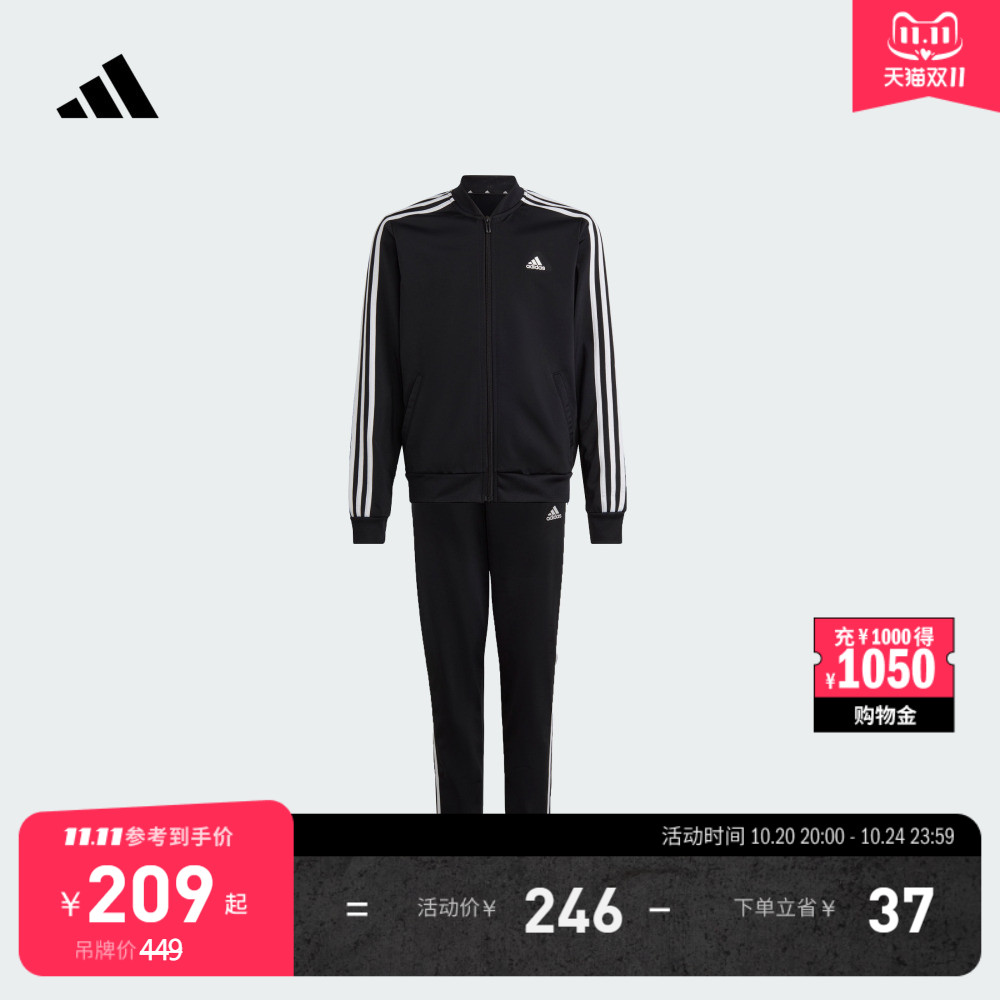 女大童休闲三条纹长袖套装儿童秋季adidas阿迪达斯官方轻运动