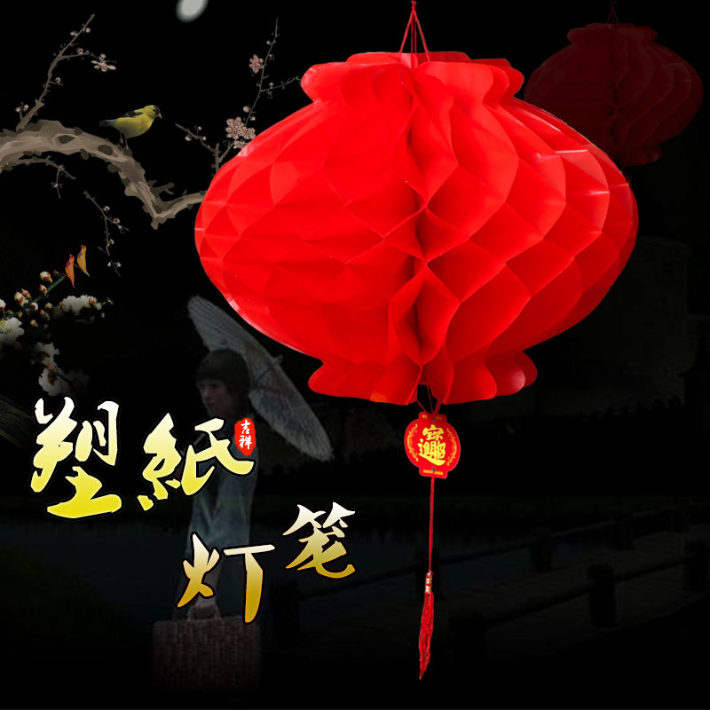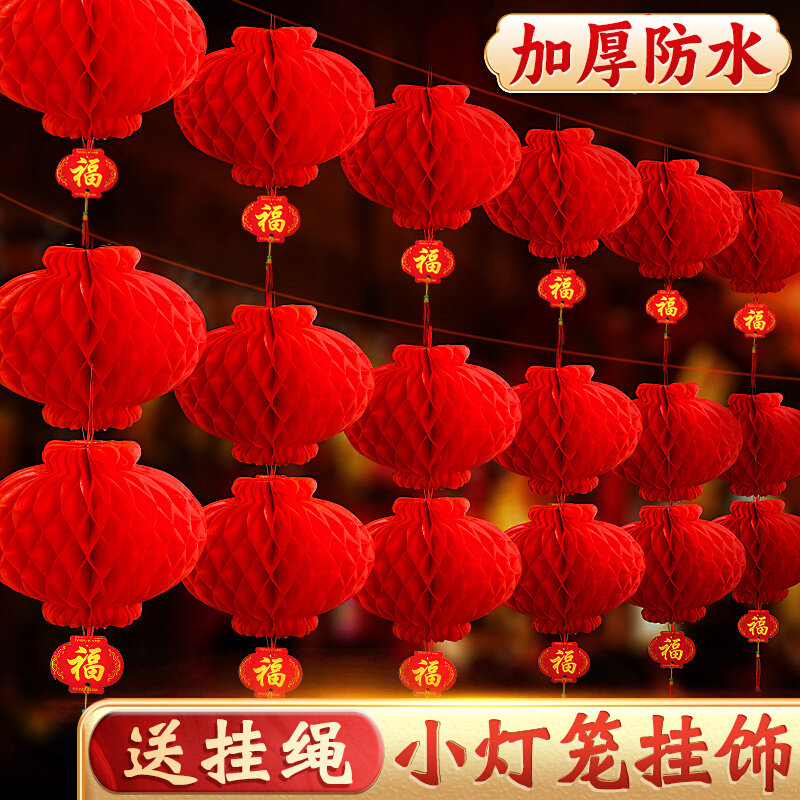 新年春节小红纸灯笼挂饰户外防水元旦过年蜂窝塑料纸店铺商场装饰