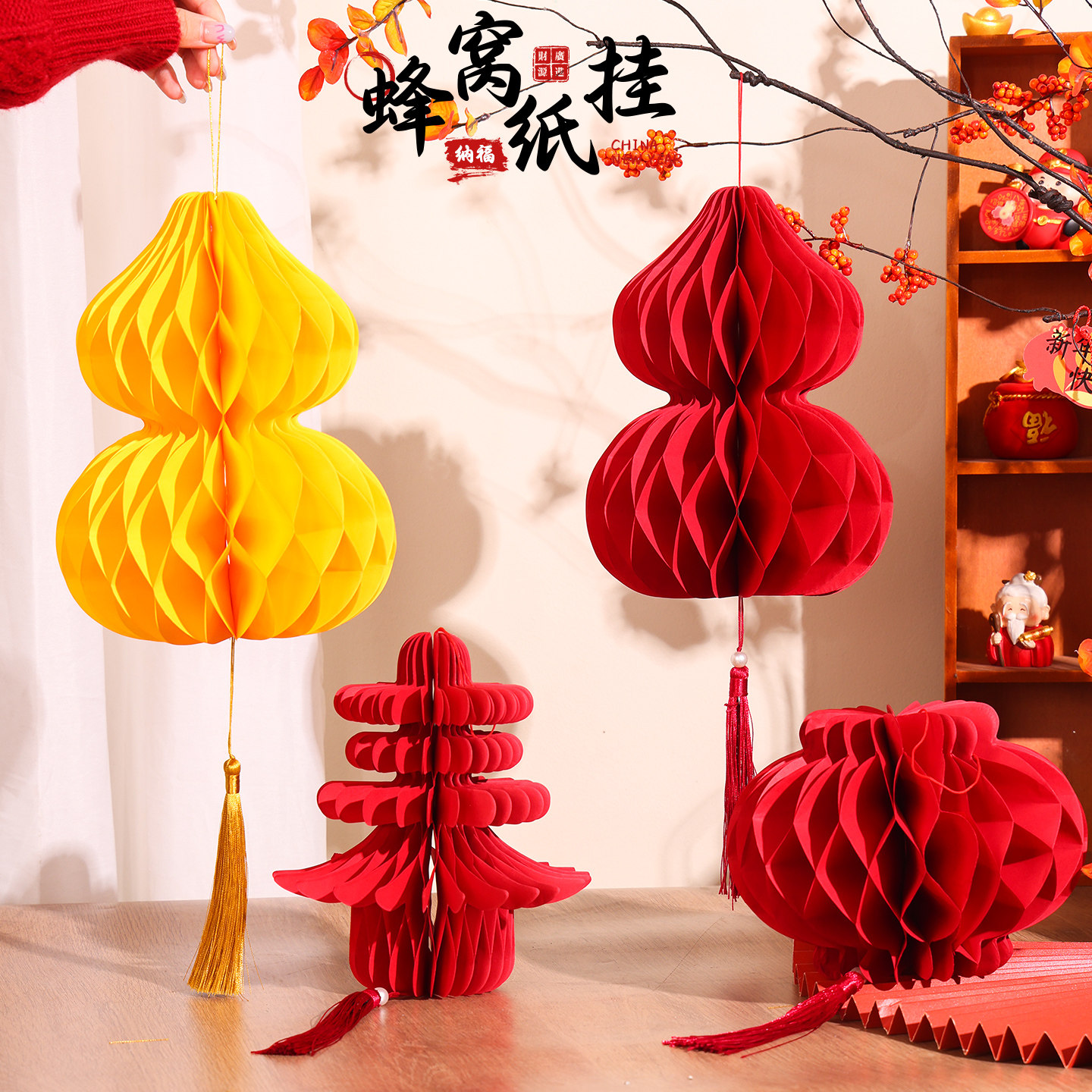 2026元旦小红纸灯笼挂饰新款蜂窝2025院子结婚过年新年春节装饰品