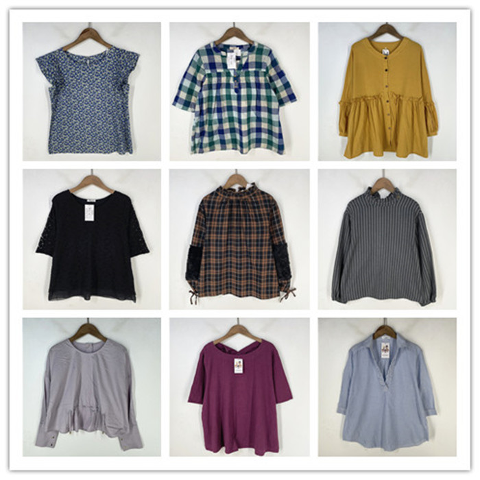 复古着vintage日韩精品校园风森女系纯色格子条纹棉麻布衬衫Z1363