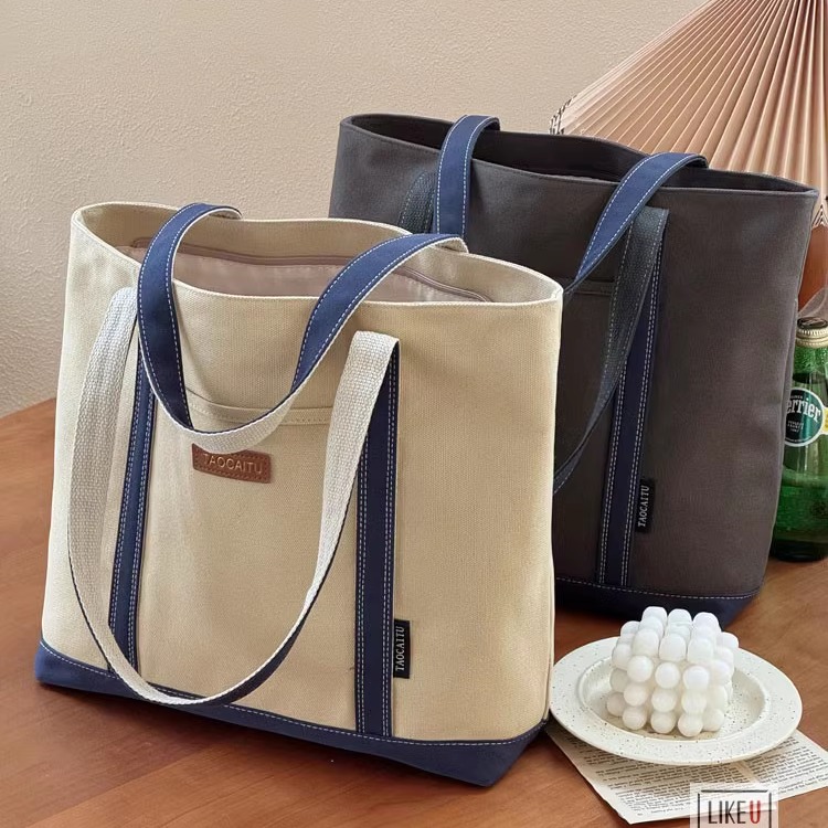 原创设计日韩文艺通勤涤纶拼接帆布托特时尚简约休闲学生单肩包袋