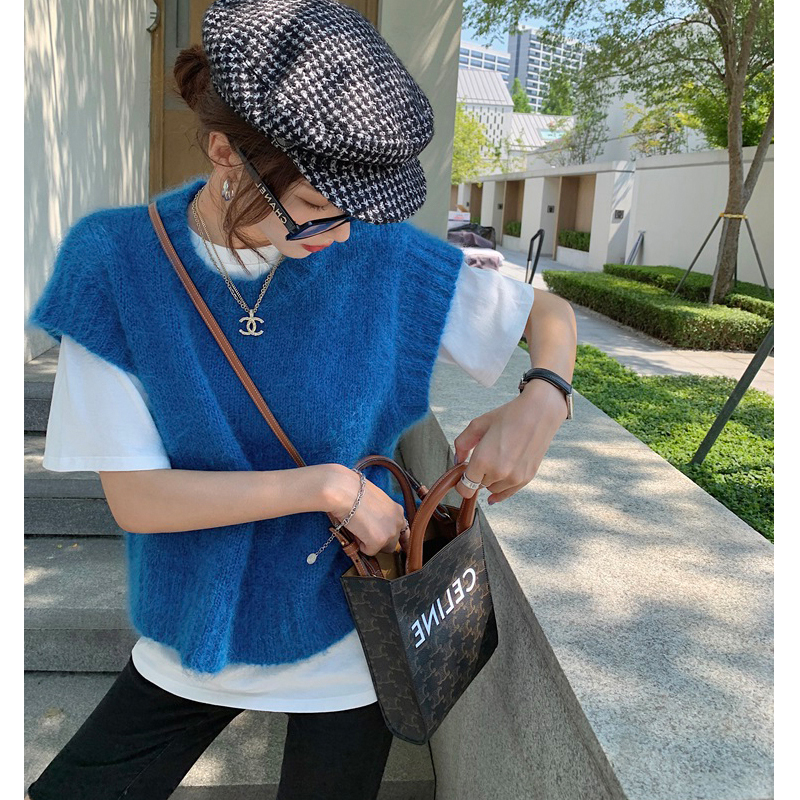 日韩慵懒风纯色外搭叠穿背心马甲2025秋冬圆领简约温柔系针织马甲