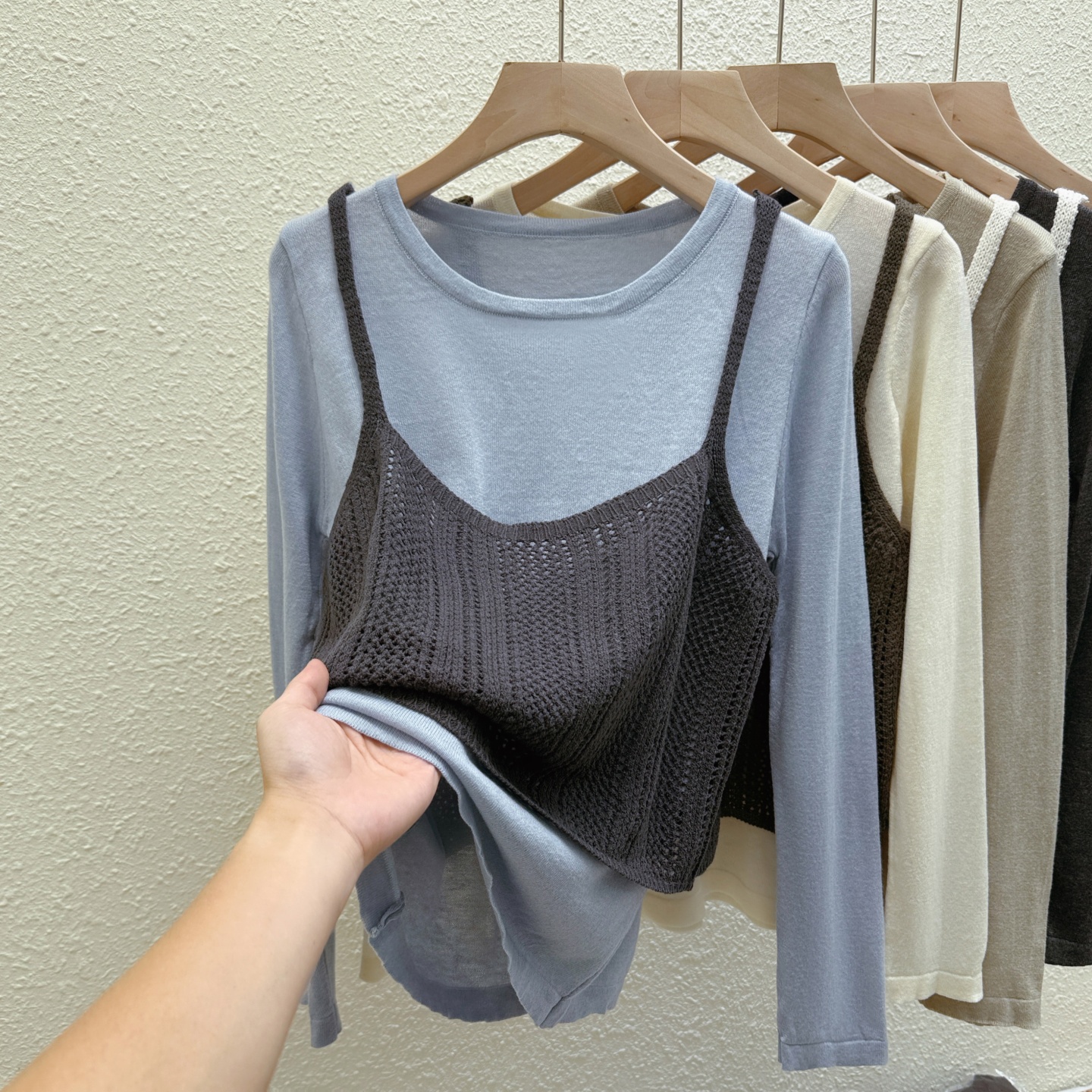 日韩系复古软糯混羊绒针织衫女秋百搭叠穿吊带背心打底两件套上衣
