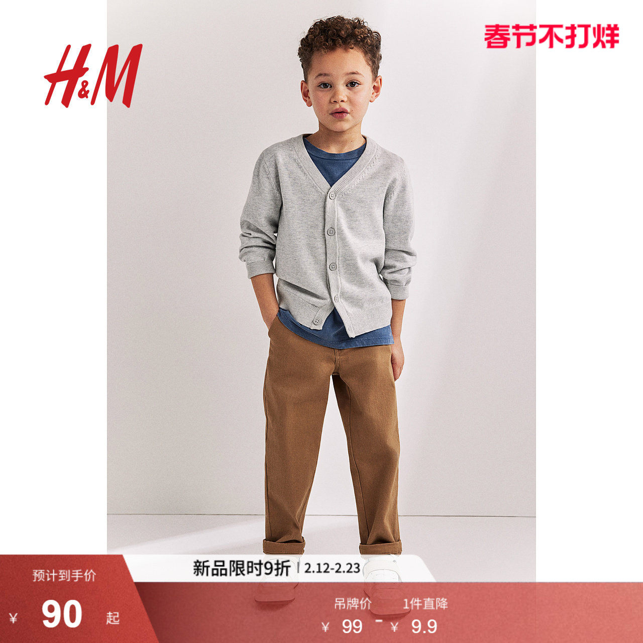 HM童装儿童男童毛衣春季棉质V领薄款细密长袖针织衫外套1066375