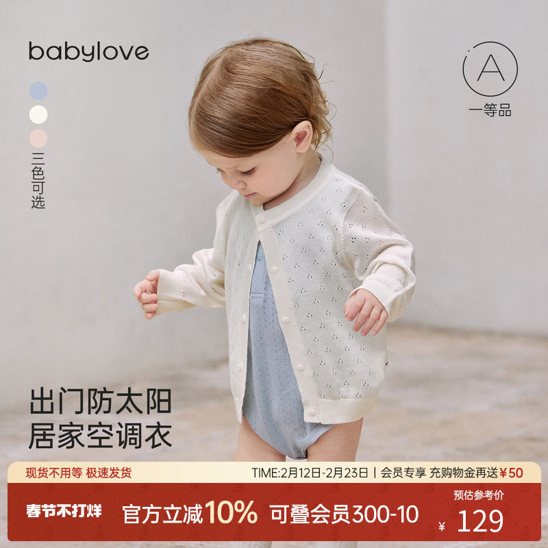 babylove婴幼儿外套夏季薄款男女宝宝针织开衫外穿百搭衣服空调衫