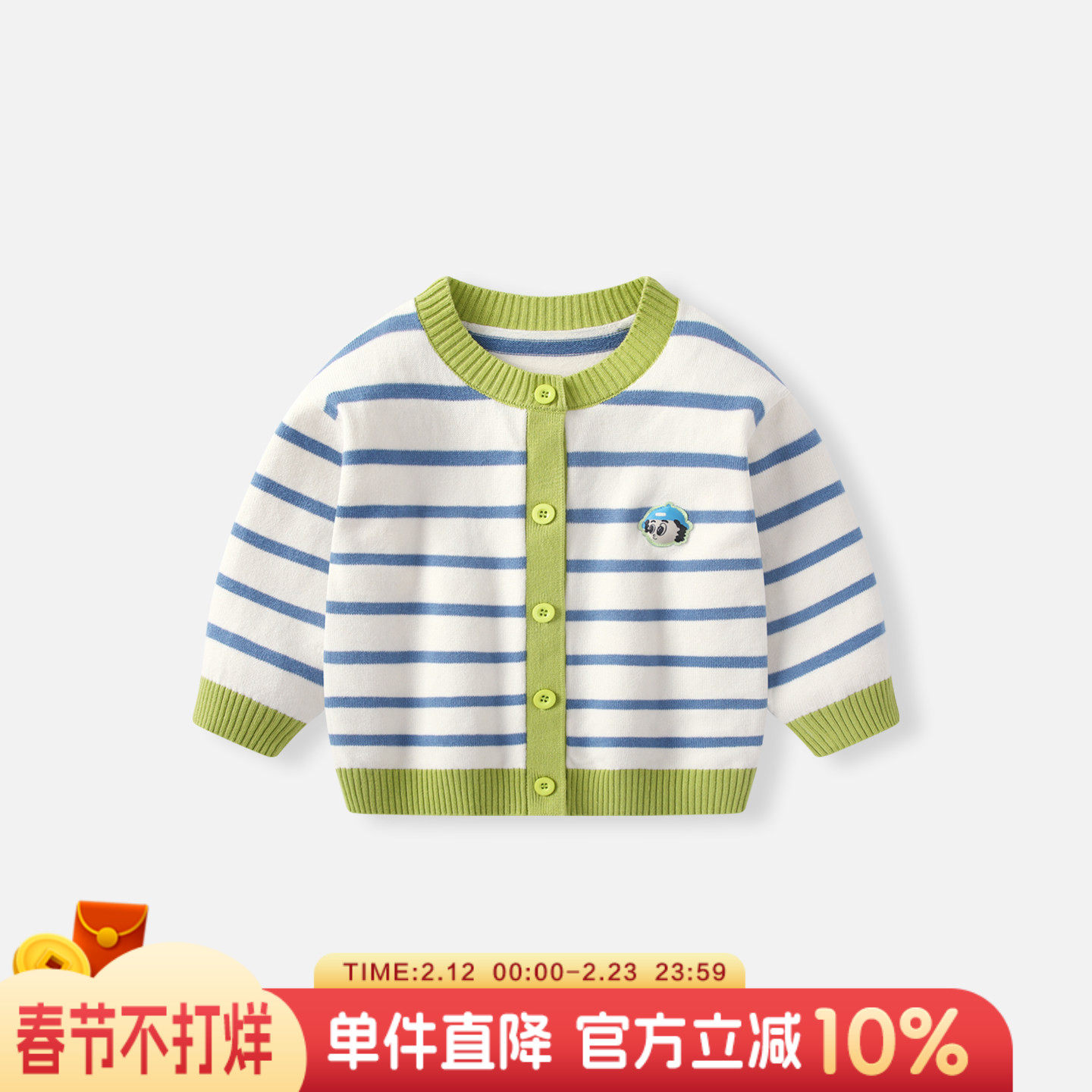 波步男宝宝外套婴儿春装2026新款针织衫开衫男童薄款毛衣儿童衣服