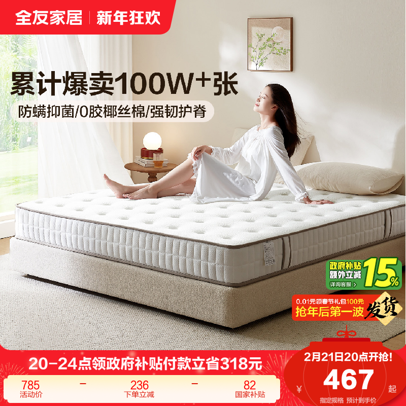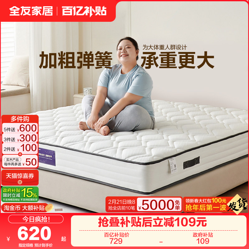 政府补贴全友家居席梦思弹簧床垫硬垫子卧室家用椰棕床垫180x200