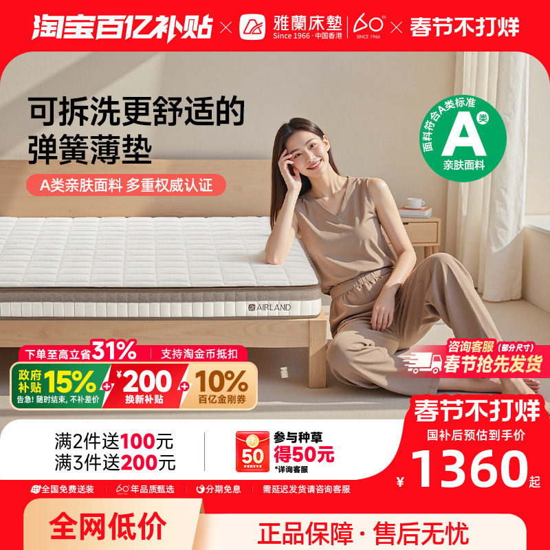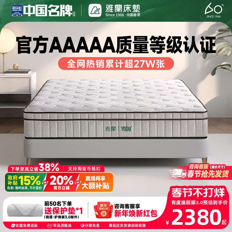 【有度旗舰】雅兰官方5A乳胶弹簧床垫硬0胶水黄麻席梦思名牌十大