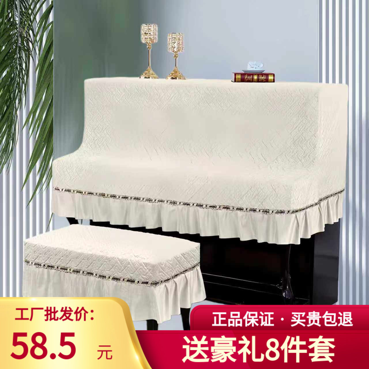 钢琴罩全罩米色蕾丝现代欧式高档简约琴罩防尘套加厚丝绒弹琴不取