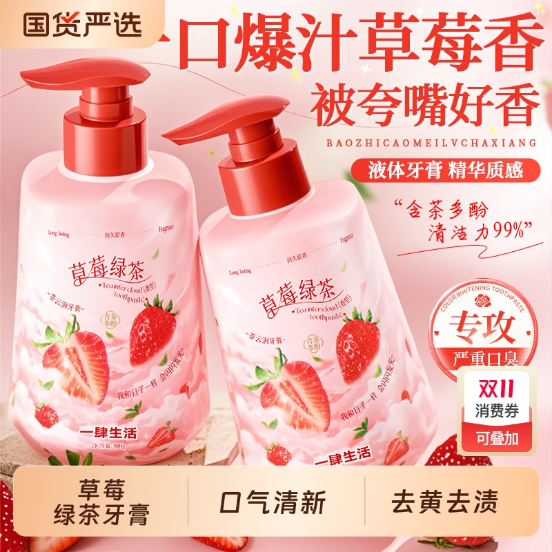 草莓绿茶牙膏按压式口气清新去黄去渍烟口臭美除白成人女男大容量