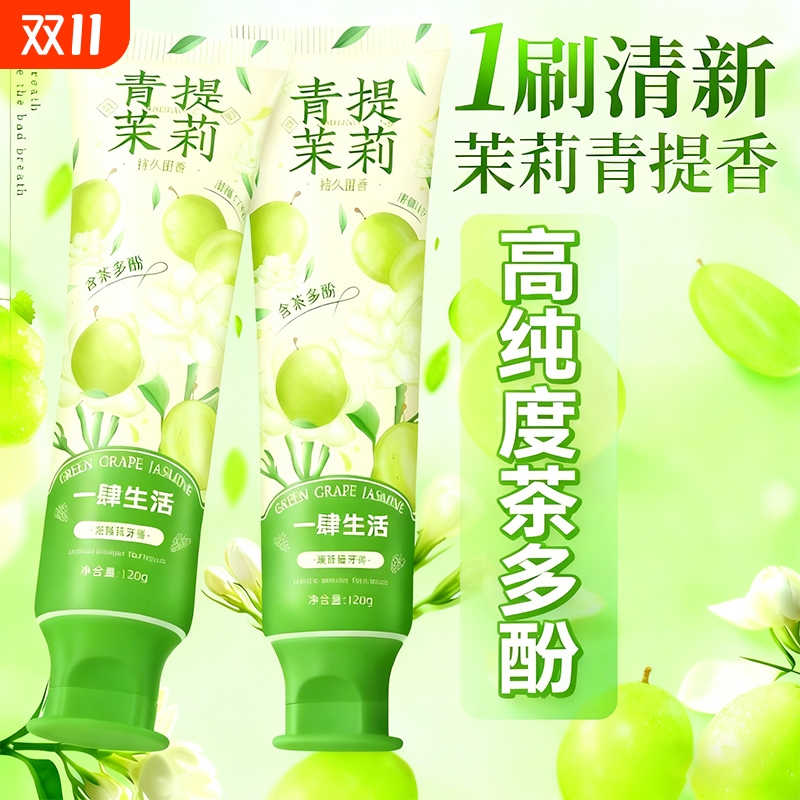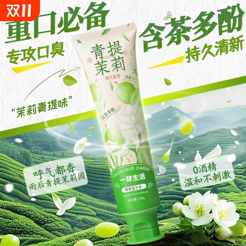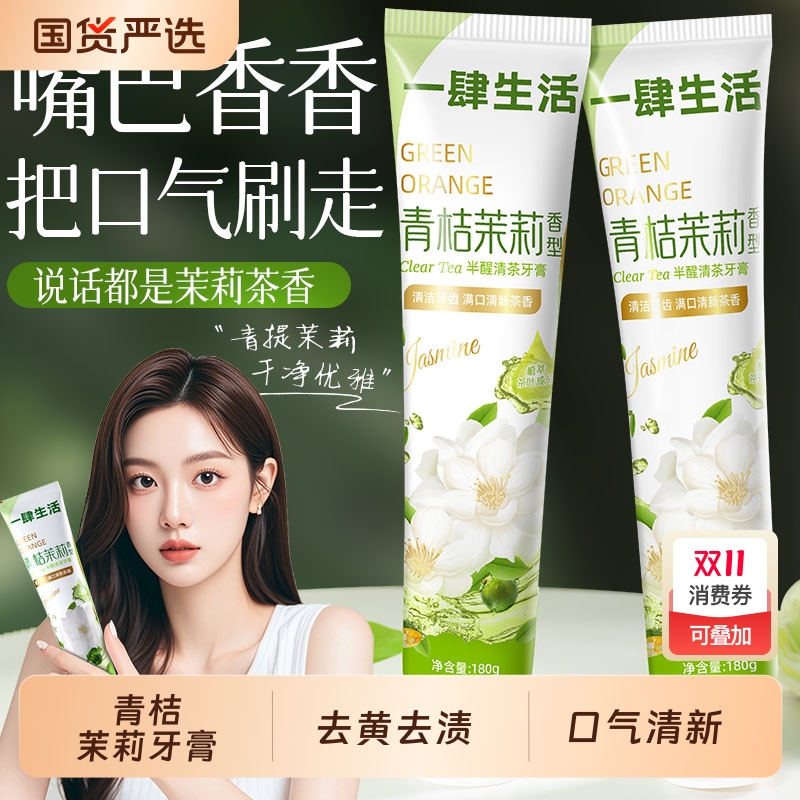 青提茉莉牙膏口气清新持久留香去黄去渍烟口臭除异味美白抑菌护龈