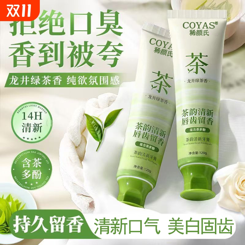 龙井绿茶牙膏长效清新口气美白抑菌去黄去渍烟口臭除异味护龈固齿
