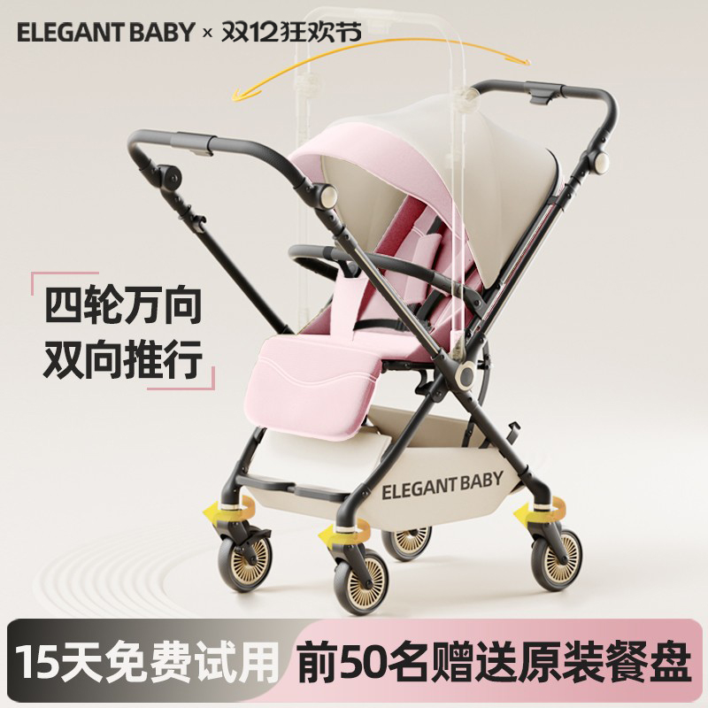 Elegant Baby四轮推车婴儿轻便折叠可坐可躺一键收车溜娃神器