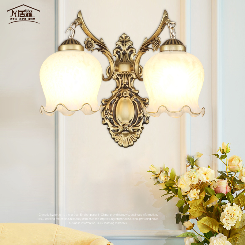 美苑韩式田园壁灯铁艺床头灯花草镜前灯双头单头壁灯过道房间壁灯