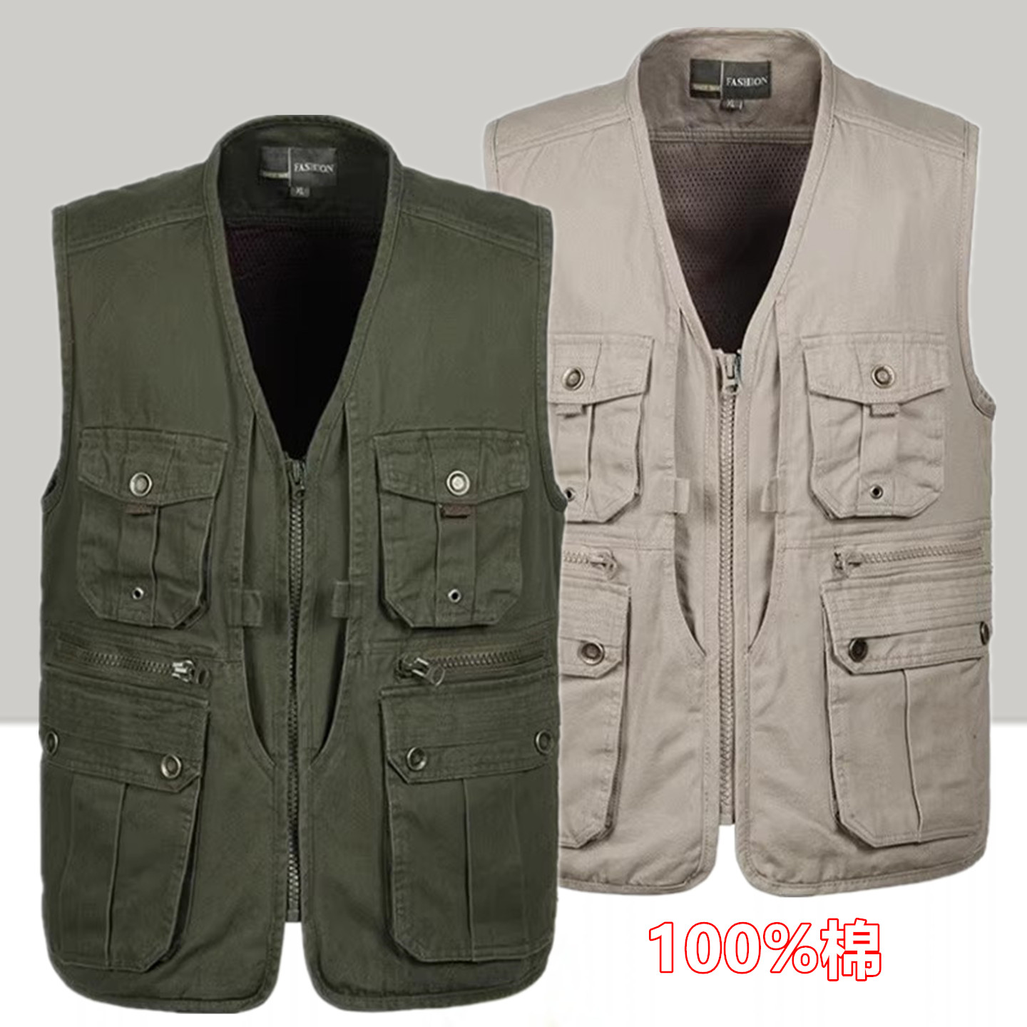 工装马甲男士秋夏季薄款大码坎肩户外背心钓鱼服马夹爸爸男装外套