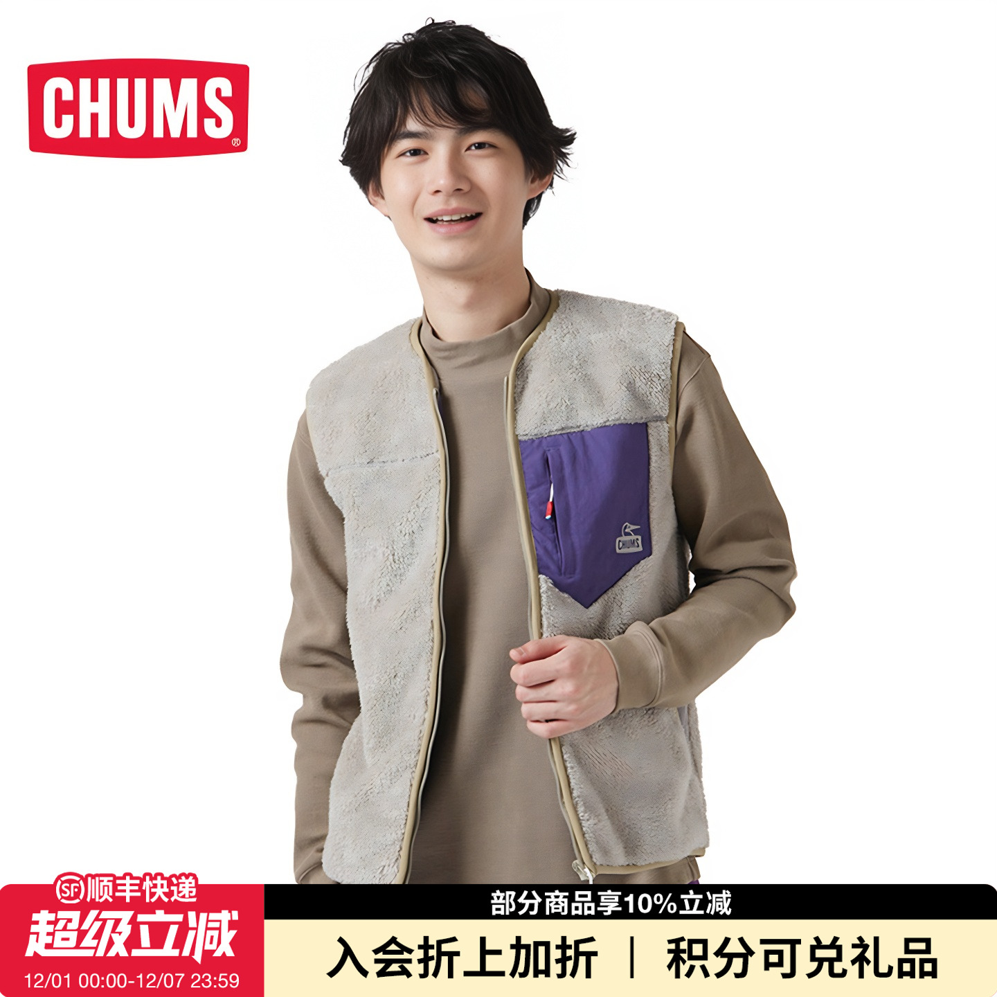 CHUMS洽洽鸟运动休闲抓绒马甲复古山系户外背心男女新款CH04-1358