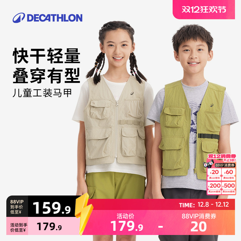 迪卡侬儿童工装马甲MH500春秋男童女童户外背心登山徒步机能KIDC