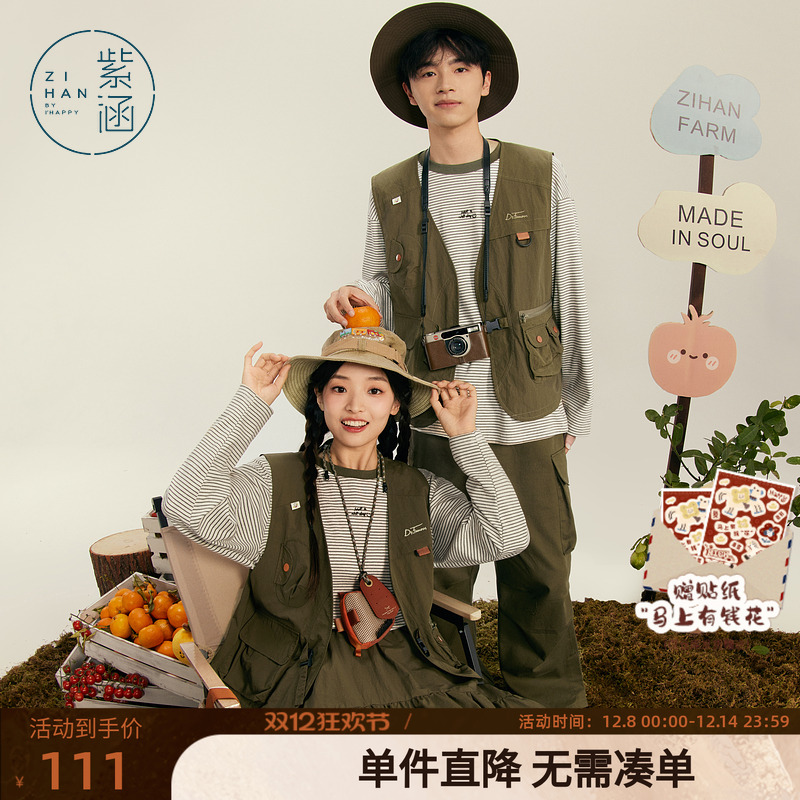 紫涵工装风无袖马甲男女同款春秋新款宽松休闲情侣款外套户外背心
