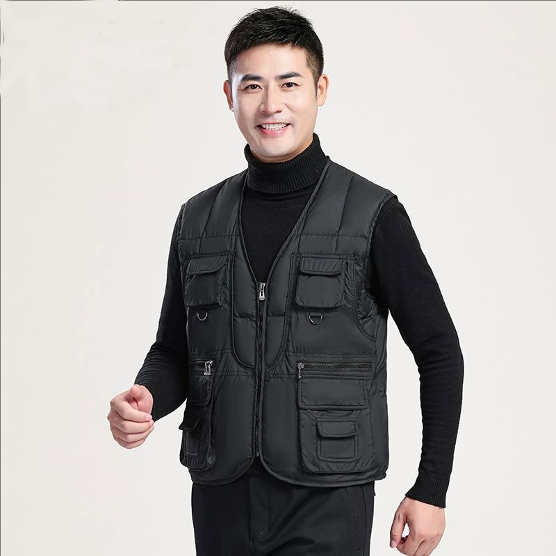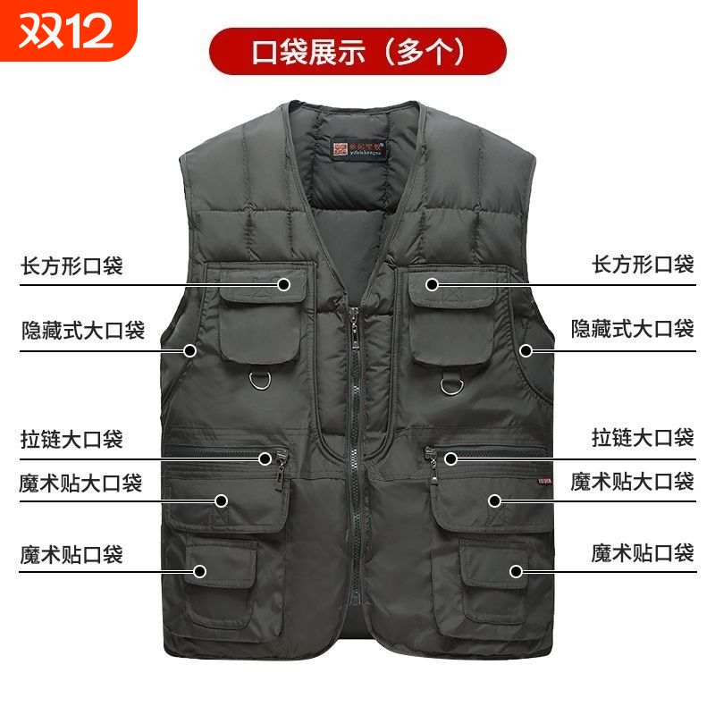 中老年羽绒棉马甲男士多口袋冬季保暖户外背心爸爸大码2025年新款