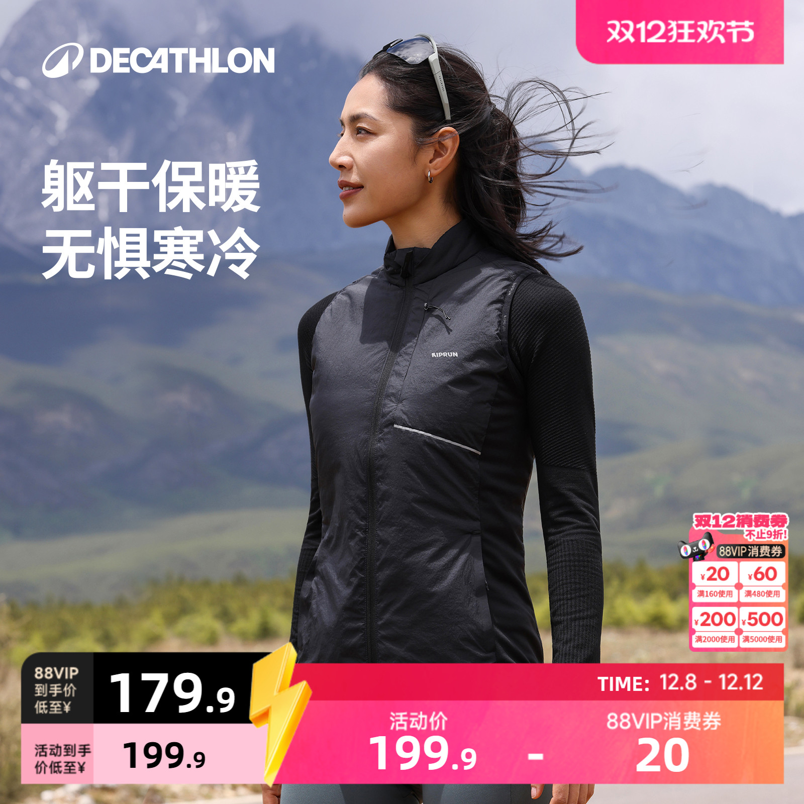 迪卡侬跑步运动马甲女秋季户外骑行健身无袖拉链保暖棉背心SAX1