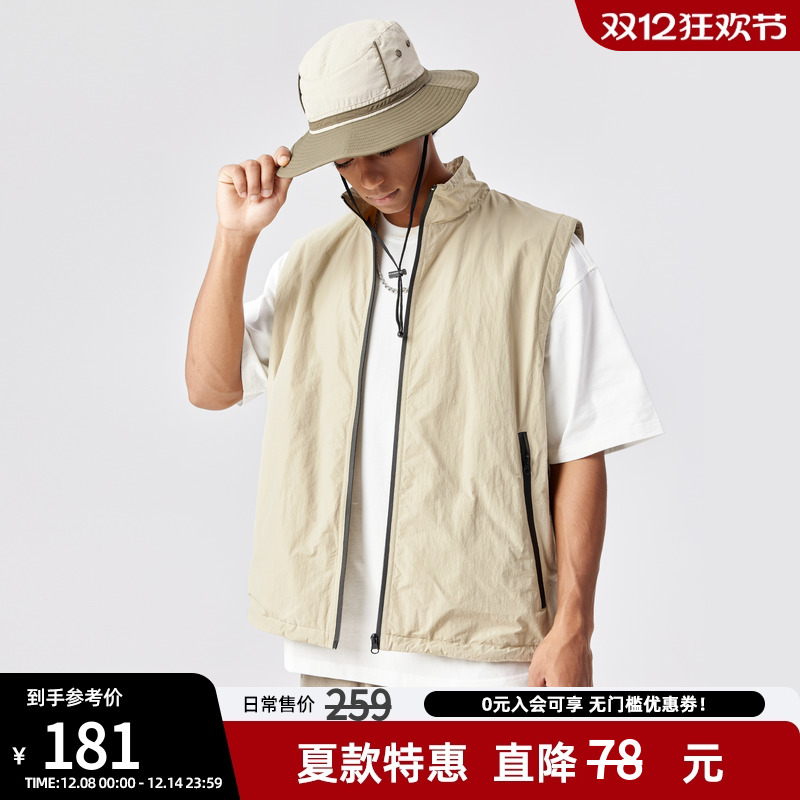 bdpowerup秋季新款梭织薄绒工装马甲男宽松休闲立领户外背心男