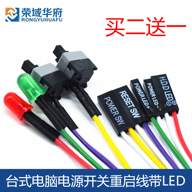 台式电脑电源开关按钮重启线带led指示灯机箱开机启动线外置power