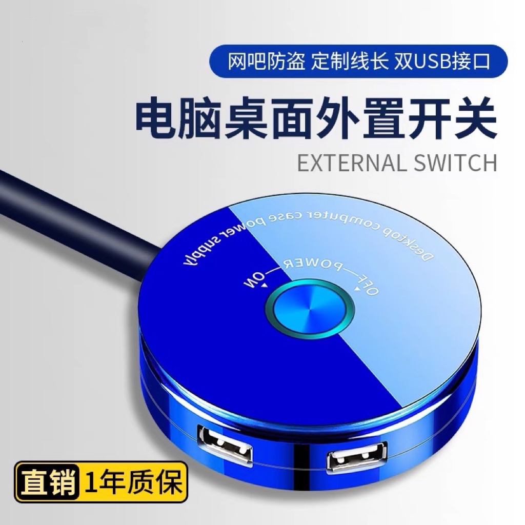 网吧电脑桌面开关 家用电脑机箱延长开关按钮 电脑电源开关 双USB