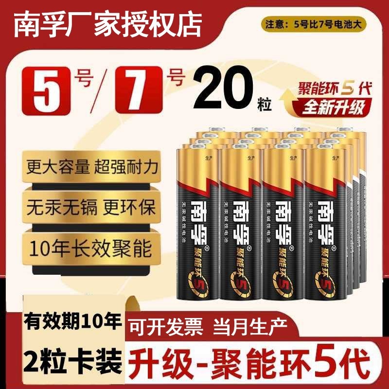南孚5号电池7号儿童玩具电池遥控器鼠标1.5V碱性干性电池聚能环5代AAA五号电池正品南孚官方旗舰店七号电池
