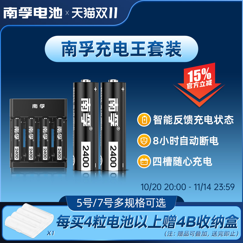 南孚可充电电池5号7号玩具电池五号七号大容量通用充电器镍氢1.2V