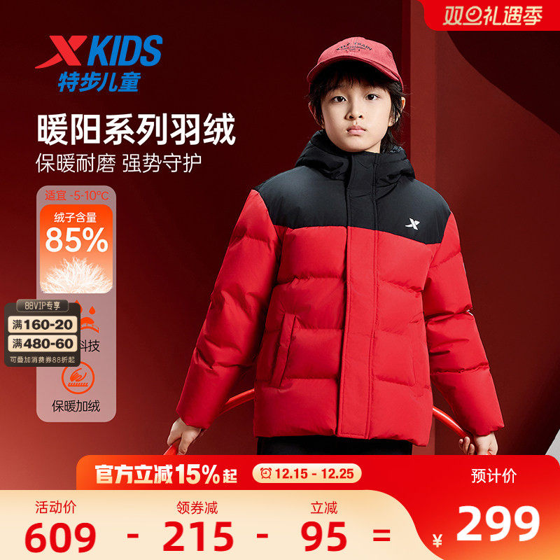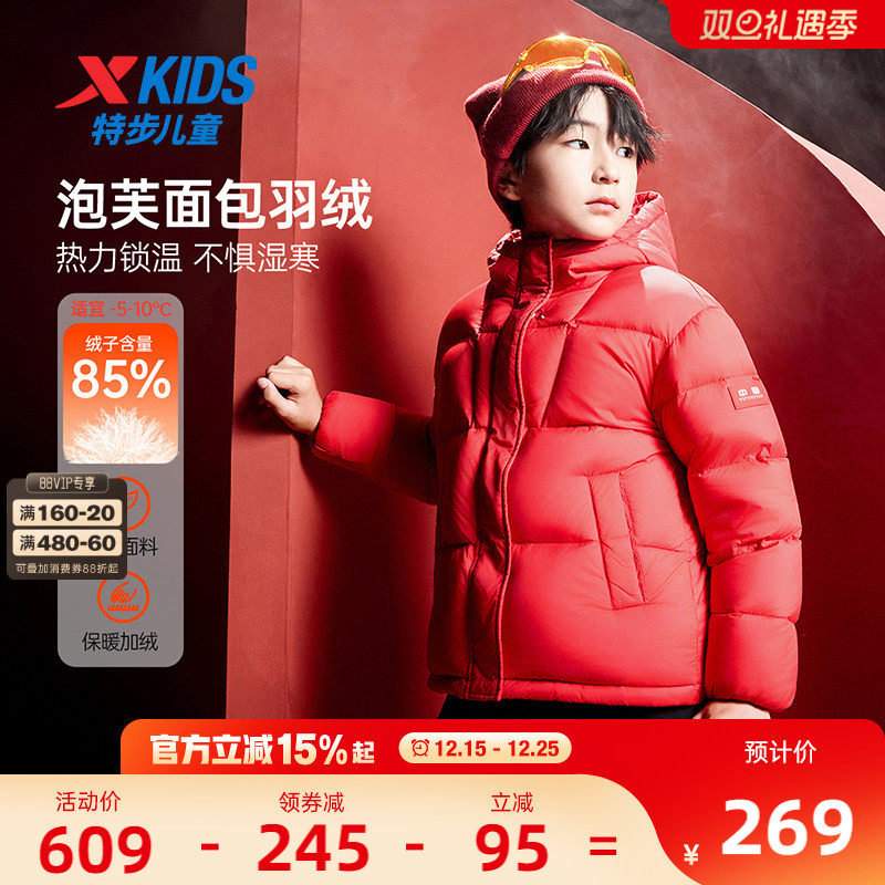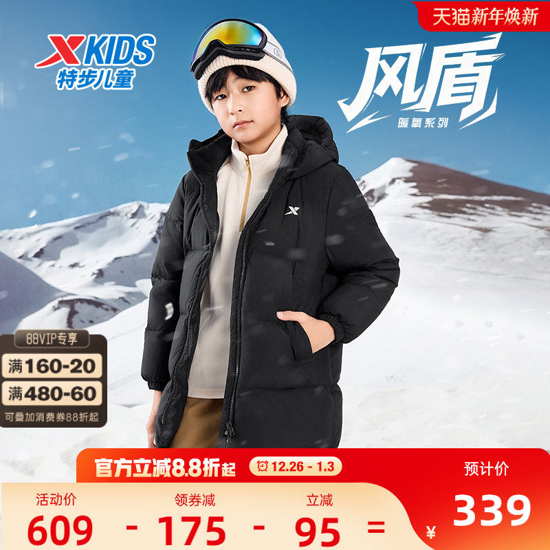 特步童装儿童羽绒服男童加厚冬装2025年秋冬款大童保暖外套防寒服