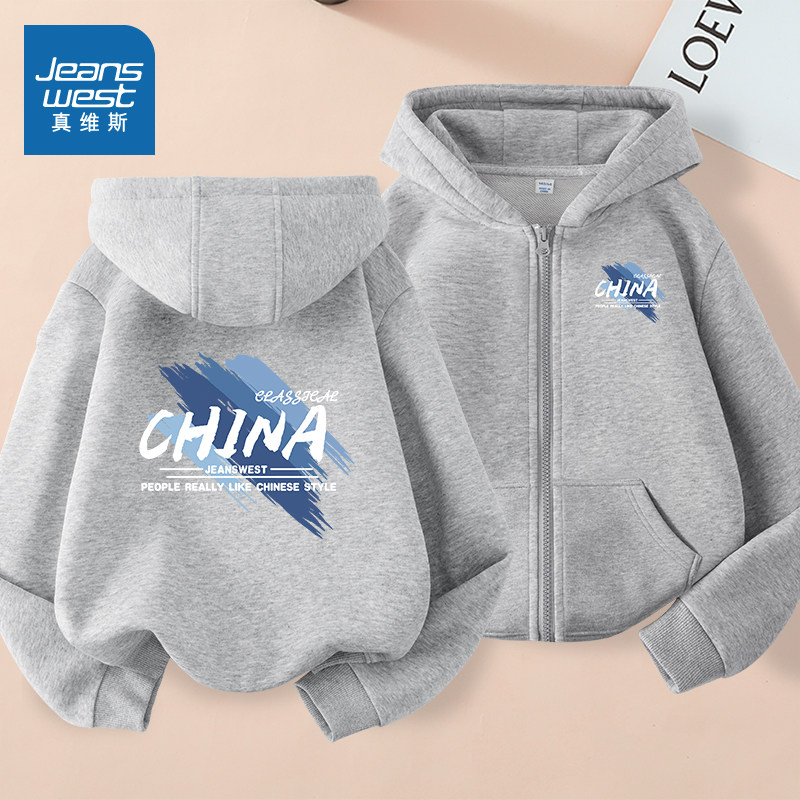 真维斯童装男童外套秋冬款男孩加绒加厚连帽开衫儿童春季拉链卫衣