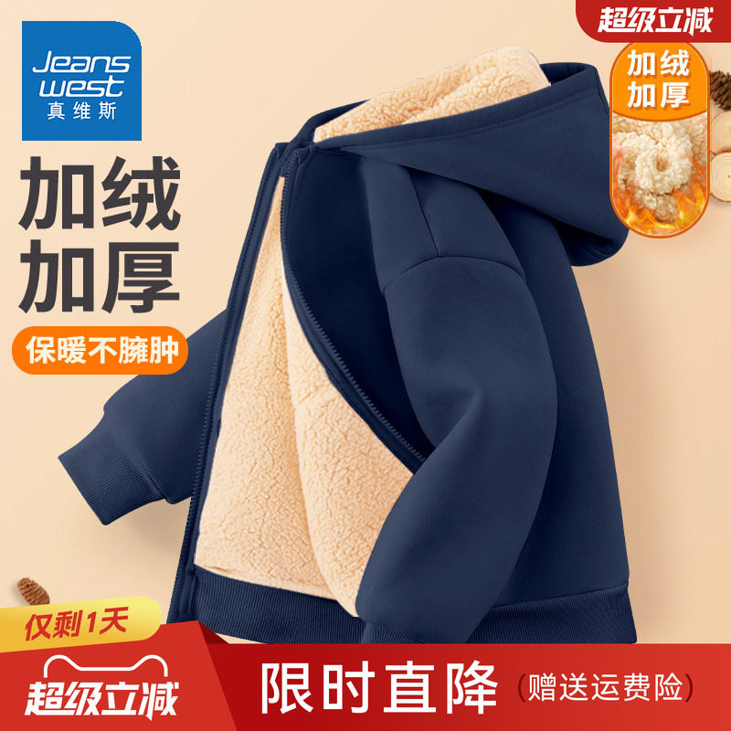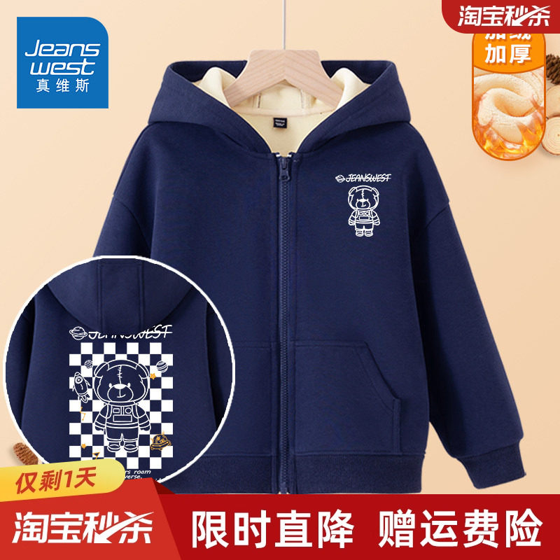 真维斯童装男童加绒外套男孩秋冬款男大童加厚儿童冬季卫衣开衫衣