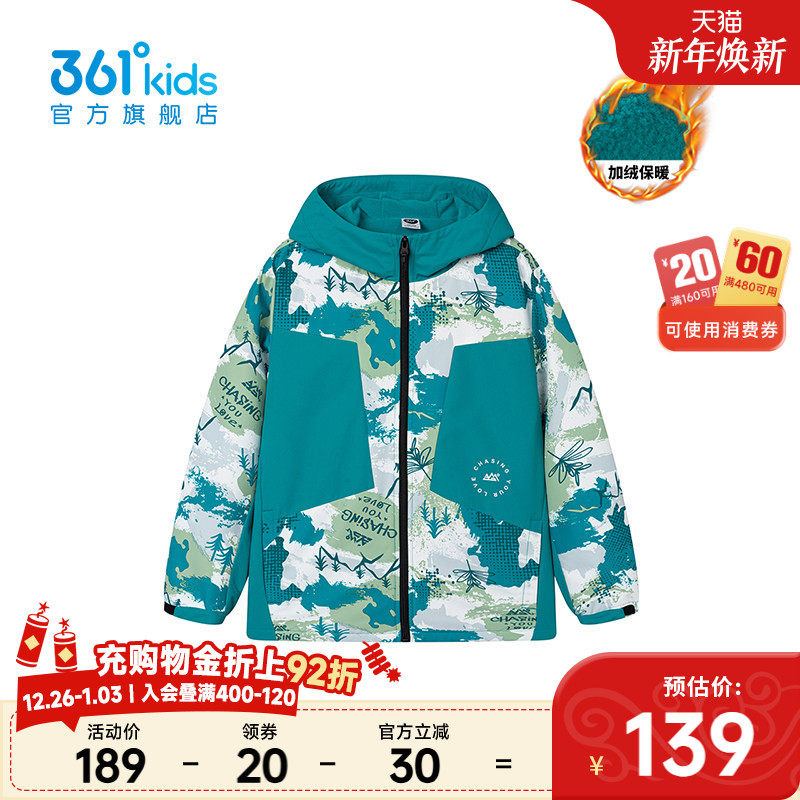 【商场同款】361度童装雨屏科技2.0男童梭织加厚外套秋季大童装