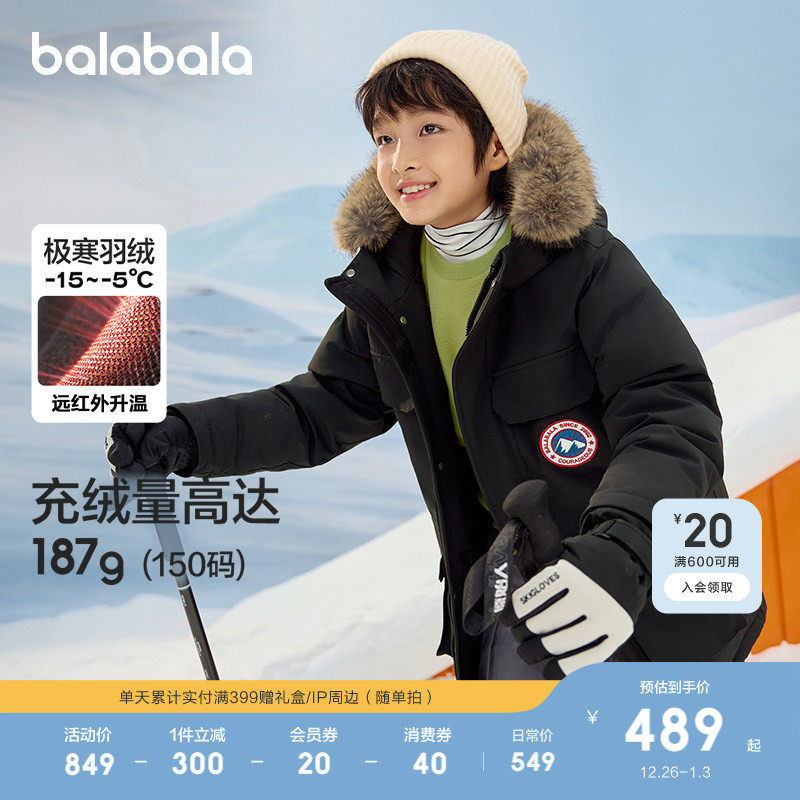 巴拉巴拉童装儿童羽绒服男童女童秋冬装中长款加厚保暖2025年外套
