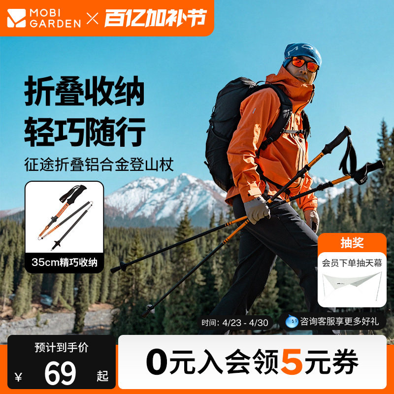 牧高笛折叠轻便铝合金登山杖超轻量专业户外徒步成人男女儿童手杖