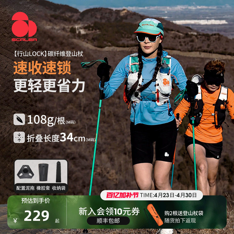 [行山LOCK]思凯乐户外登山杖专业碳纤维超轻便折叠徒步越野跑手杖