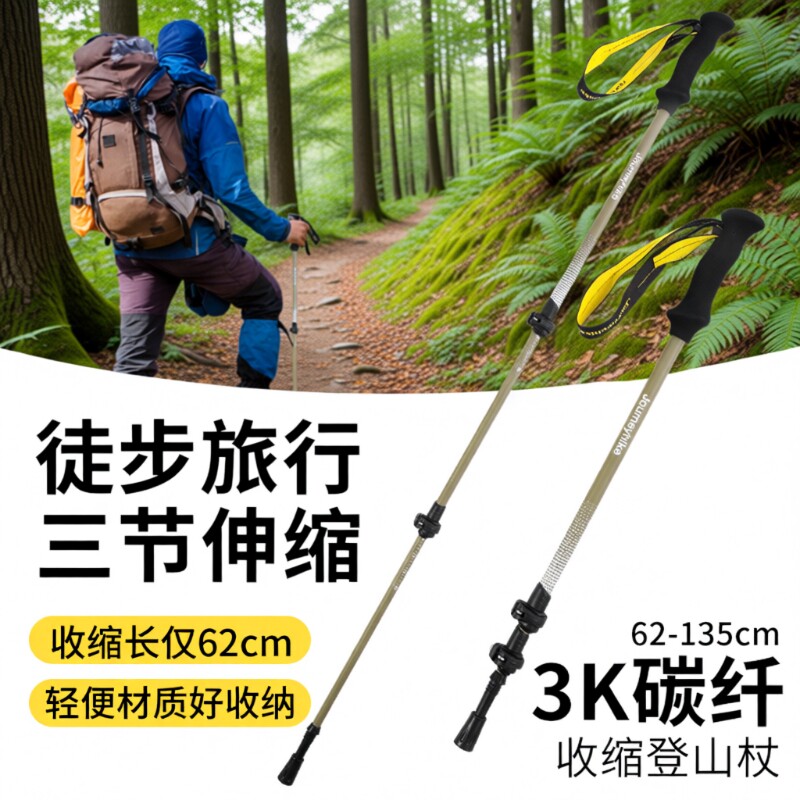 专业户外碳纤维登山杖手杖伸缩爬山成人儿童3k徒步装备便携超防滑