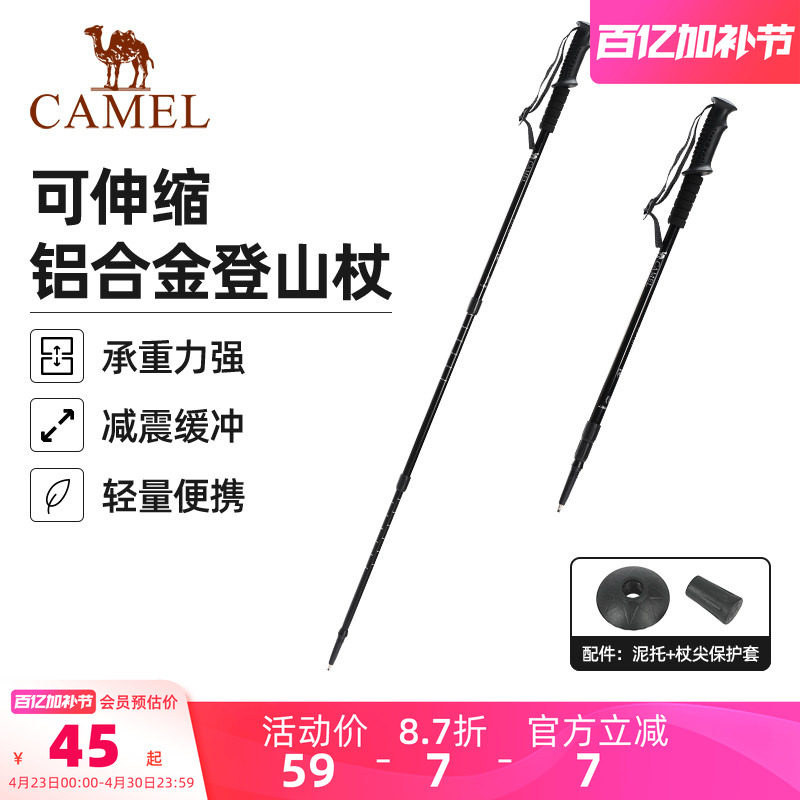 骆驼登山杖手杖男女款折叠碳素超轻伸缩铝合金专业户外徒步爬山杖