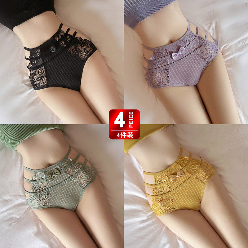 4条高颜值性感高腰大码胖mm内裤女蕾丝镂空无痕提臀收腹内衣裤头