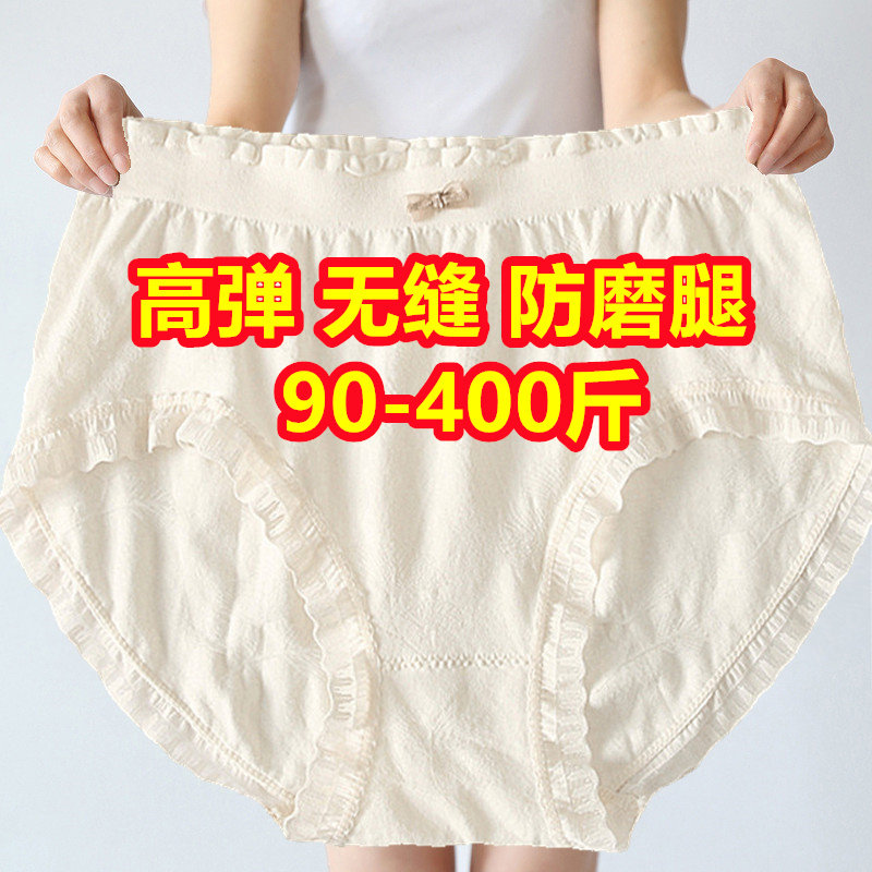 大码胖mm内裤女200斤蕾丝中腰网纱性感包臀无痕纯棉裆薄款宽腰边