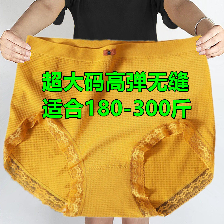 超大码胖mm内裤女人200斤高腰特大号300斤加肥加大黄色蕾丝三角裤