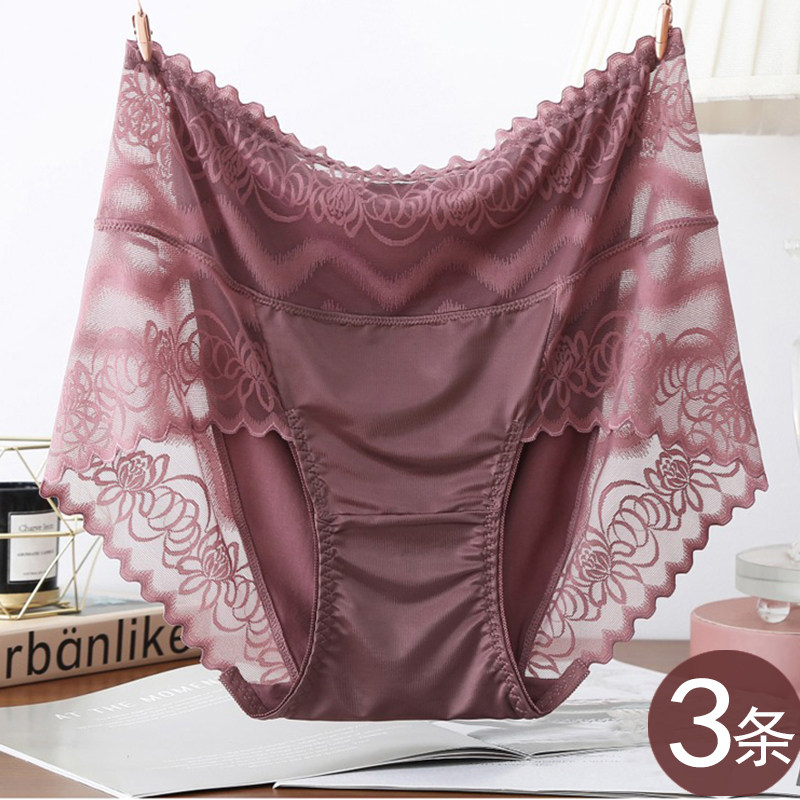 加肥加大码胖mm内裤女性感蕾丝网纱莫代尔无痕特大码中年妈妈高腰