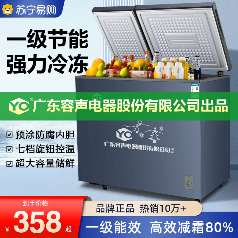 容声408L冷柜家用小型冷藏冷冻两用冰柜大容量卧式商用小冰箱