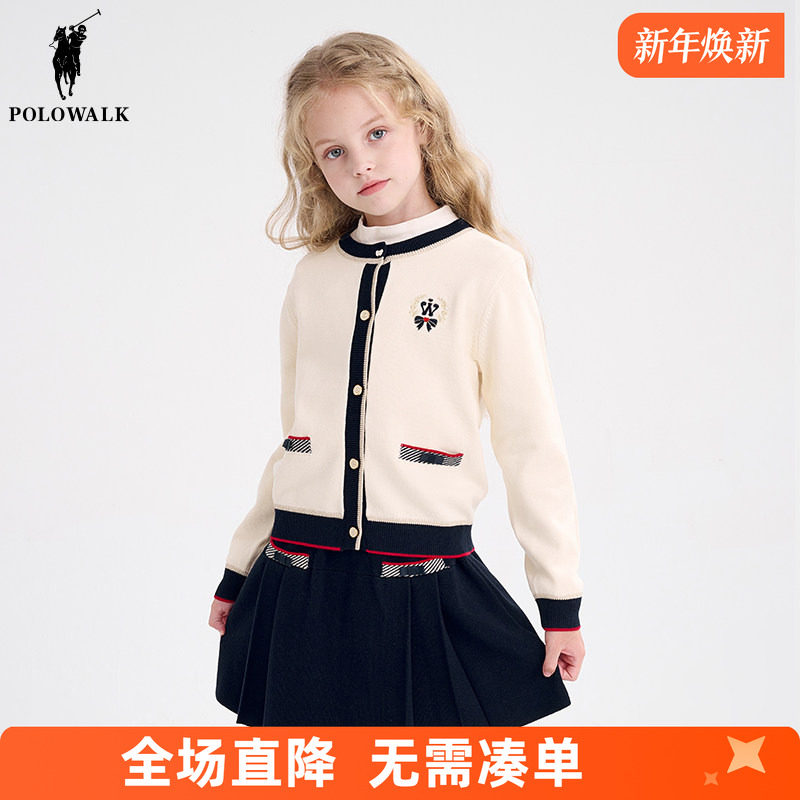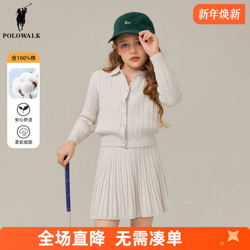 POLOWALK童装 女童长袖套装针织衫裙儿童两件套2025秋冬装短裙子
