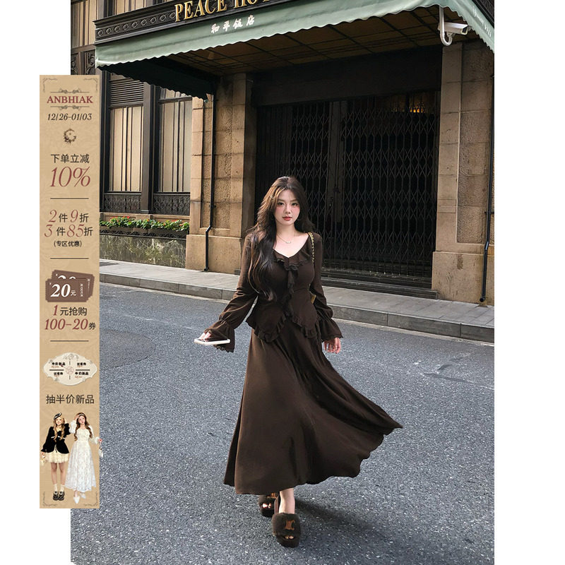气质针织连衣裙两件套装女秋冬季2025新款今年流行爆款独特超好看