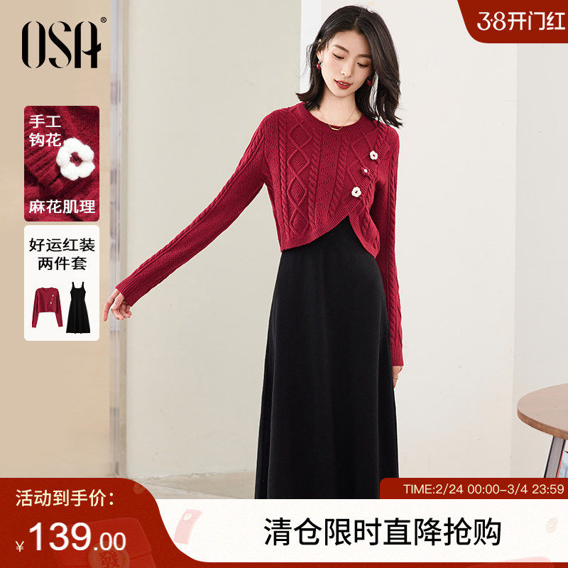 OSA欧莎千金连衣裙套装针织衫连衣裙两件套女士秋冬季2024年新款