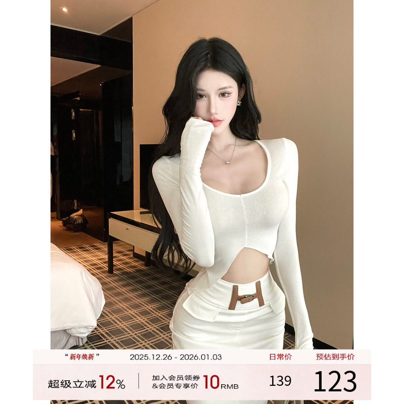 【现货】灰尘邓邓 辣妹穿搭套装女秋冬针织长袖T恤上衣半裙两件套