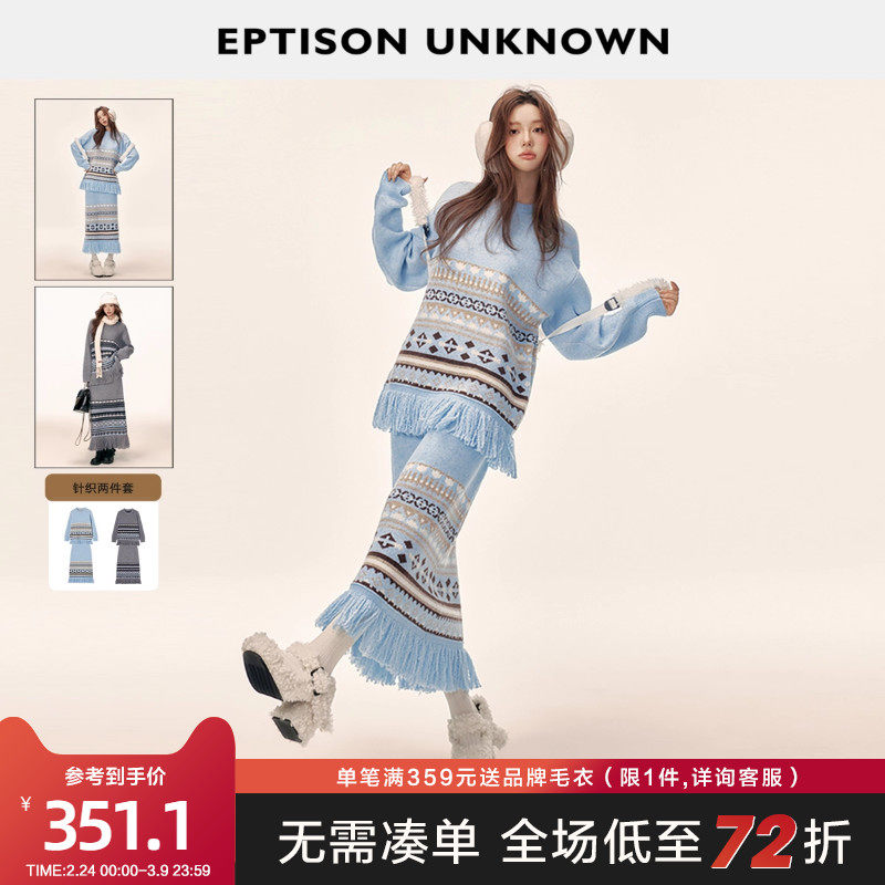 EPTISON针织套装女2025冬季新款费尔岛毛衣半身裙时尚条纹两件套
