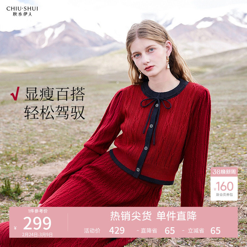 秋水伊人温柔红色针织套装2026春季新款装圆领上衣半身裙两件套