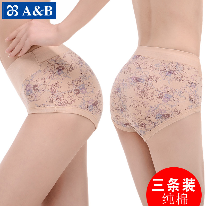 ab内裤【3条装】女纯棉印花高腰抗菌三角裤妈咪旗舰店官网L630